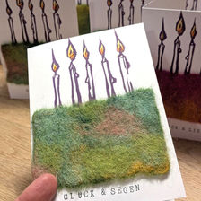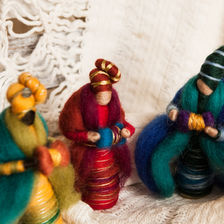 In my workshop, I create wool figures such as nativity scene figures, Waldorf-inspired animals, and enchanting mythical creatures, as well as angels, fairies, lucky charms, baby mobiles, and jewelry made from natural sheep’s wool. Recently, I’ve also begun incorporating original linocuts into my work, expanding my creative practice to include a graphic, timeless form of expression.